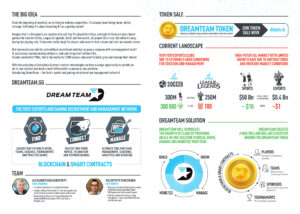 La beta se lanzará en septiembre de 2017, y basándose en blockchain, “fomentará la confianza y la transparencia, especialmente a través de smart contracts”. El origen de esta plataforma se encuentra en el hecho del creciente número de jugadores que tienen los principales títulos de esports pero las pocas organizaciones que existen en comparación. Según los creadores de DreamTeam, una de las razones para que haya tal disparidad es la barrera de entrada existente cuando se trata de construir y administrar un nuevo equipo de esports, problema que la plataforma pretende abordar. Para ello proporcionará una solución todo en uno para los jugadores que quieran construir, crecer, administrar y monetizar a sus equipos.